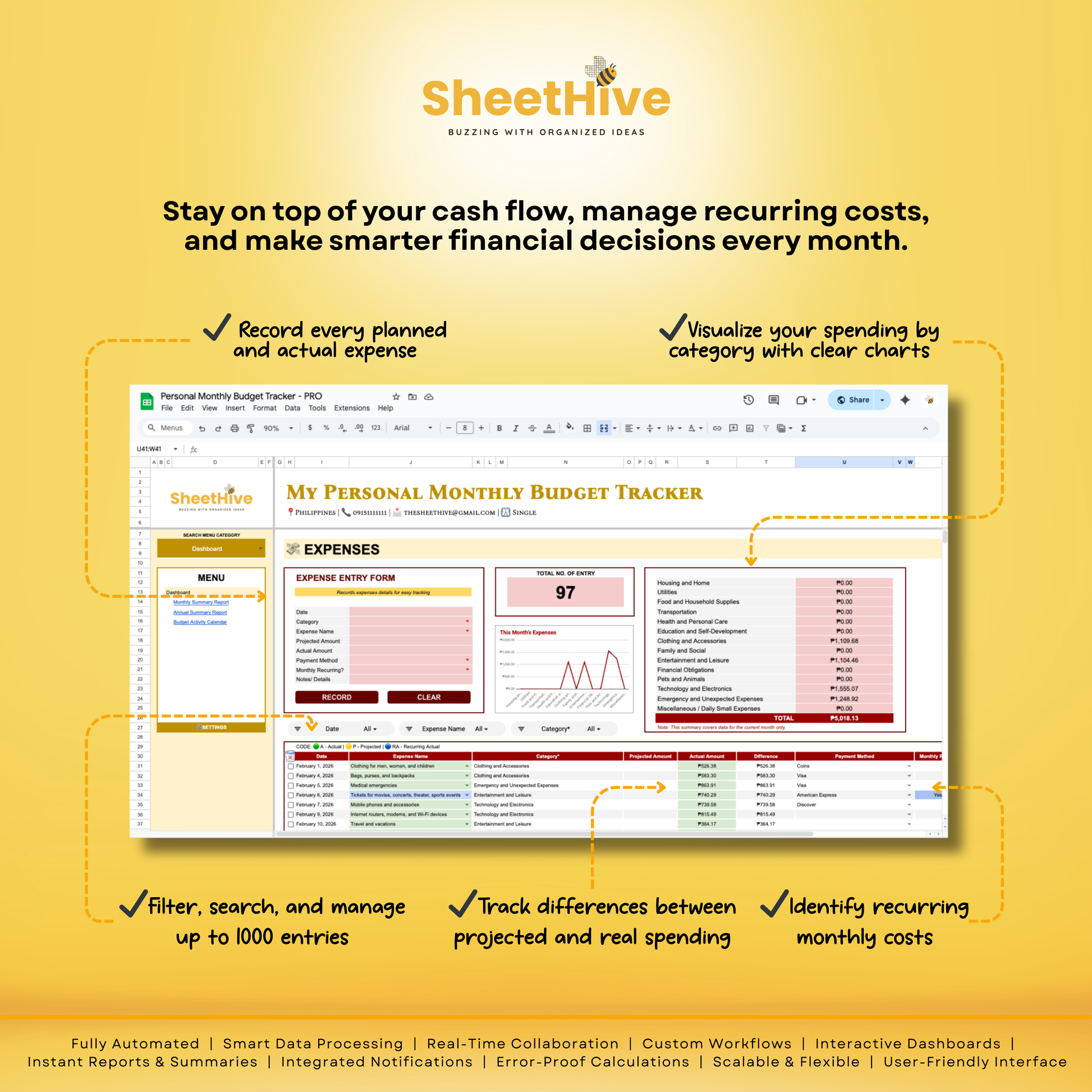 Personal Monthly Budget Tracker - PRO